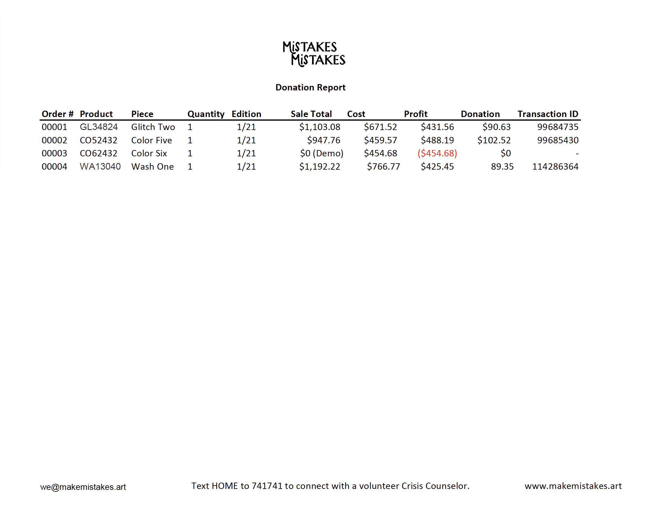 Mistakes | 21 Limited Edition Art Prints, Donating 21% to Crisis Text Line